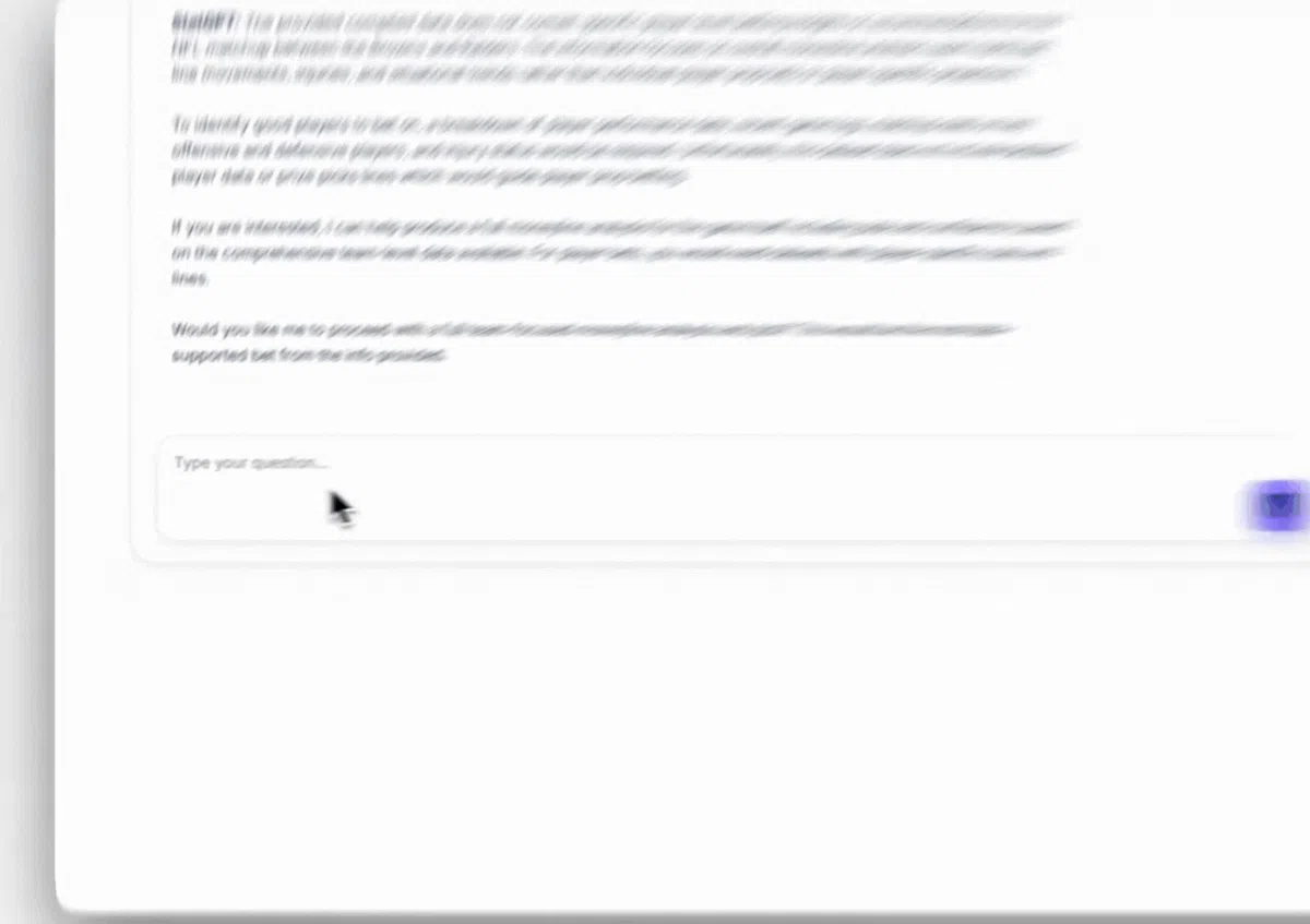 You know the game, you’ve got sheets, maybe even GPT prompts. We centralize the stats, apply advanced analytics, and give you clean insights to save hours and giving you confidence in your parlays.
